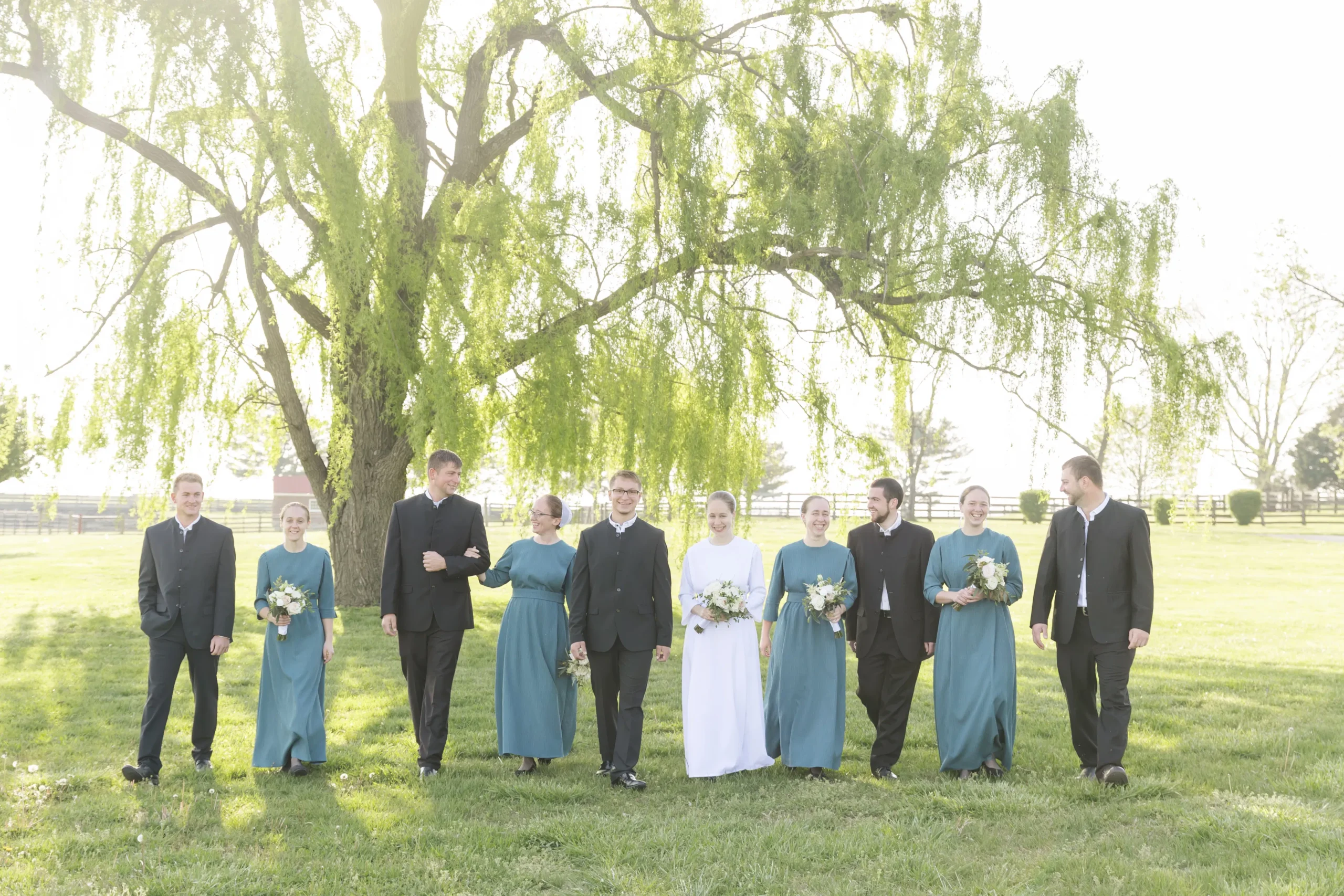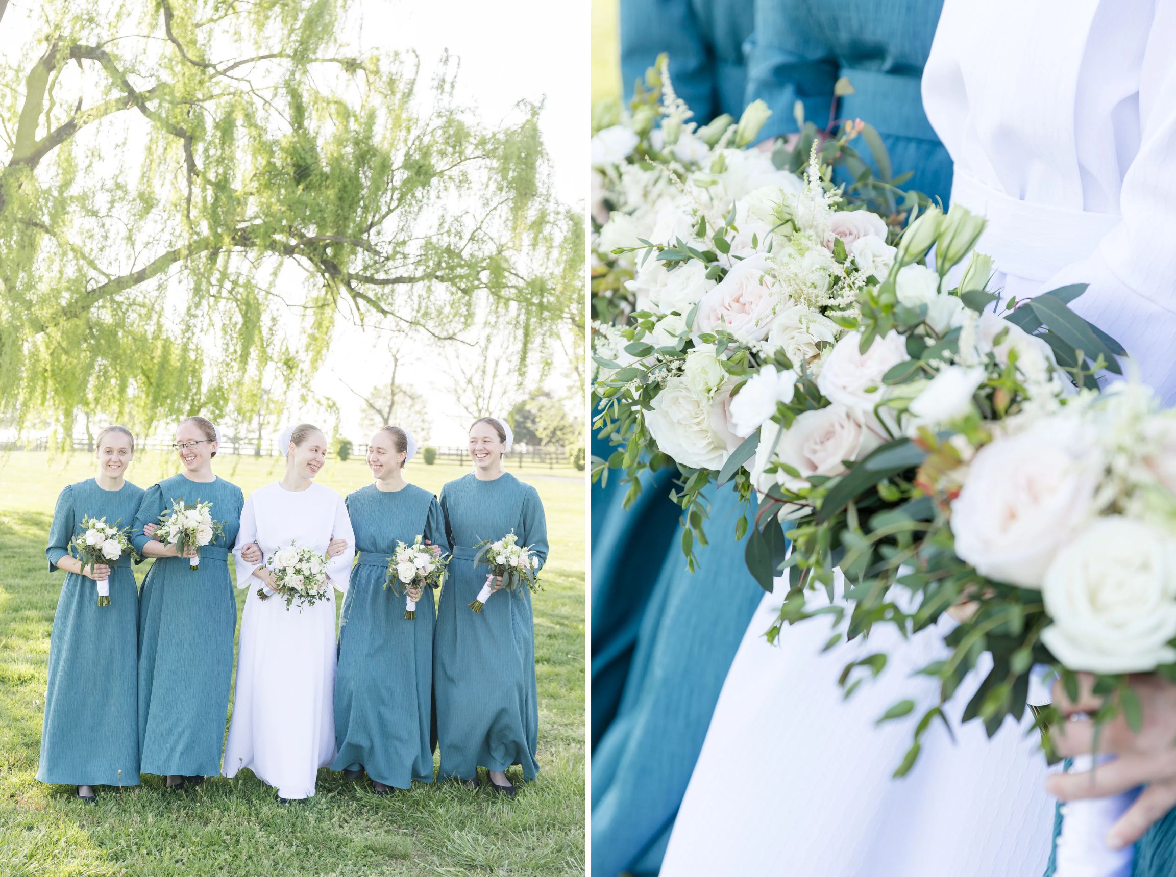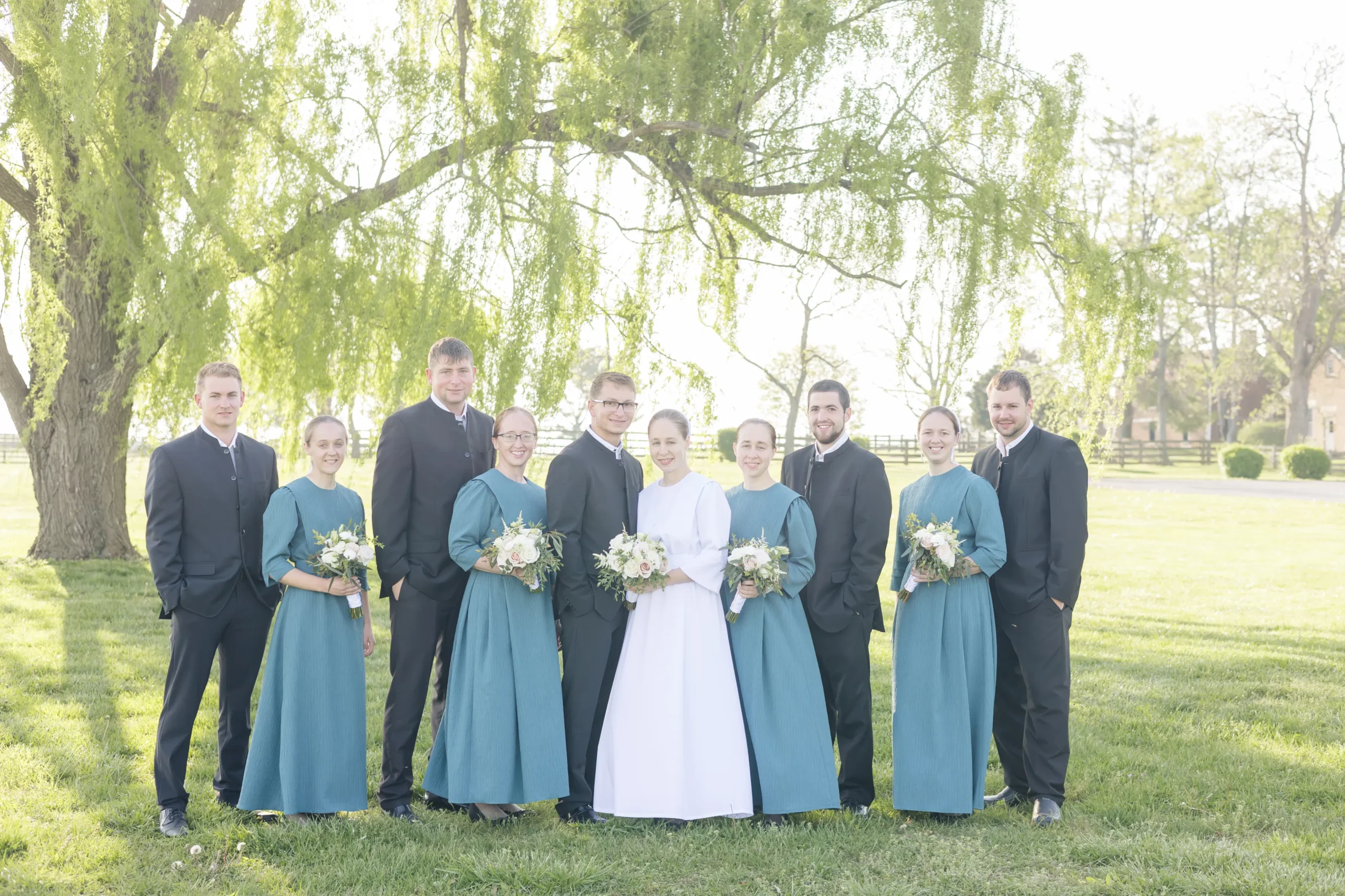 For bridal party portraits, planning 30 or 40 minutes should be good. That will be enough time to capture all the standard bridal party shots and also hopefully a few more creative ones. Most photographers will have a system that they go by to make sure you get all the normal bridal party shots, and if there is extra time, it’s always fun to do a few fun, creative ones. Making sure to give them the names of your friends in the bridal party will be a big help to the photographer.